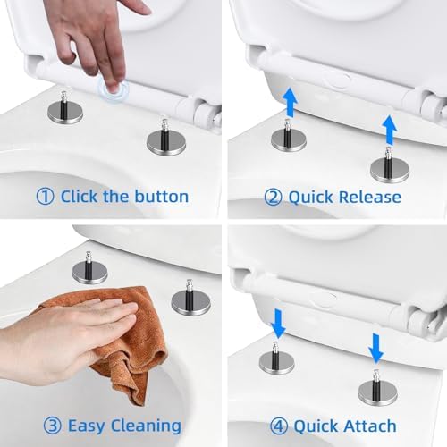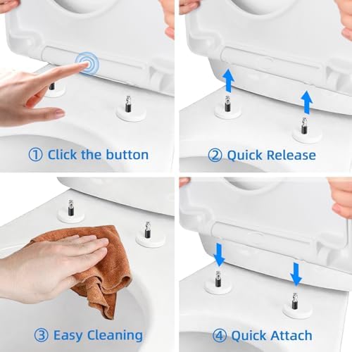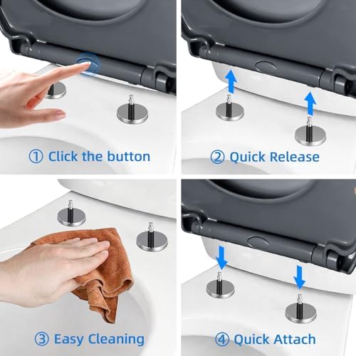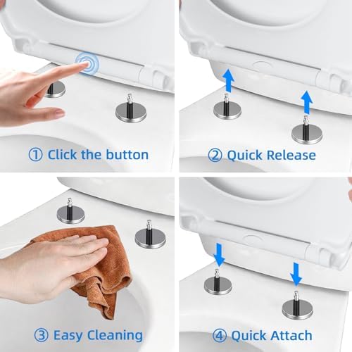Die integrierte Quick-Release-Funktion ermöglicht eine unkomplizierte und effektive Reinigung des Toilettensitzes. Durch Drücken eines Knopfes lässt sich der Sitz leicht abnehmen – ideal für eine gründliche Pflege ohne umständliches Abschrauben. Zudem sorgt die glatte, schmutzabweisende Oberfläche dafür, dass der Sitz stets gepflegt aussieht.