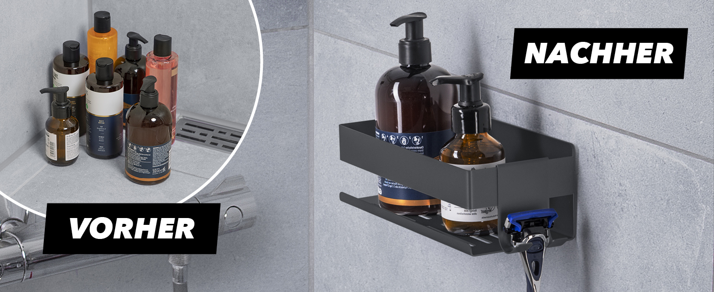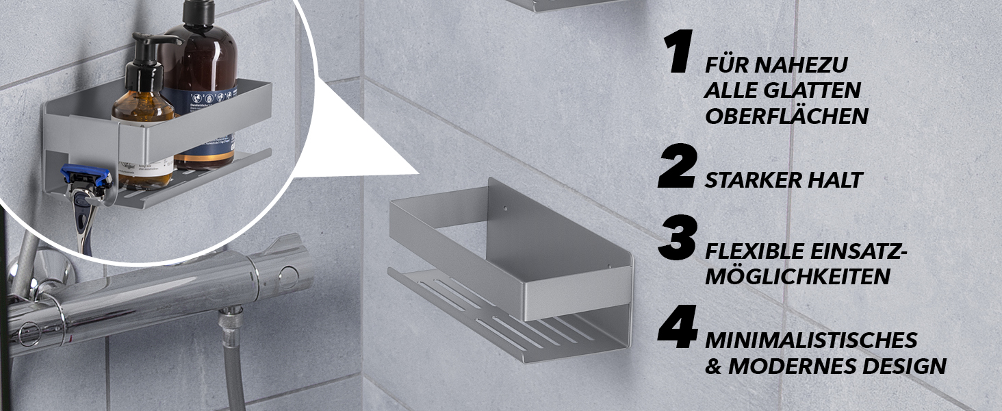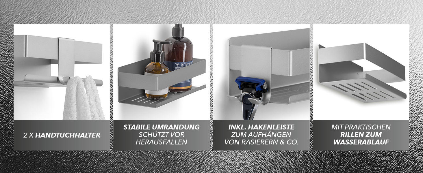 • Platzsparendes Design: Ideal für die Dusche, aber auch vielseitig einsetzbar in der Küche oder im Vorratsraum.