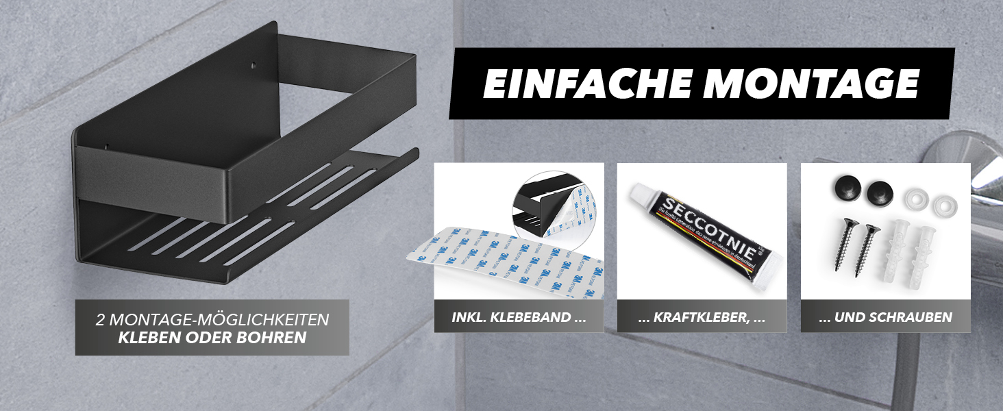 Schreiben Sie die erste Rezension für «BENKSTEIN Duschablage 2er-Set | Duschregal zum Kleben oder Bohren | Praktische Halterung für Duschgel & Shampoo in Ihrem»