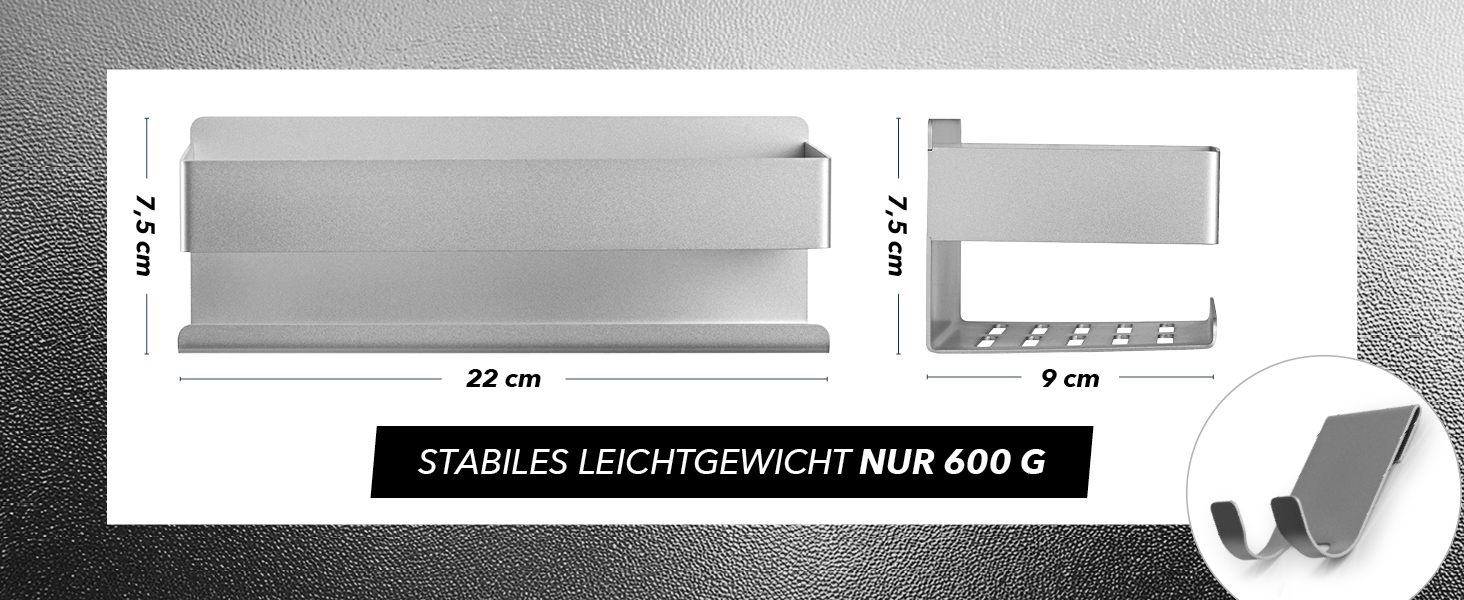 • Stilvolles Aussehen: Modernes Design in kompakten Maßen (22 x 9 x 7,5 cm), passend für glatte Flächen wie Fliesen und Glas.