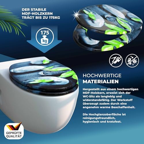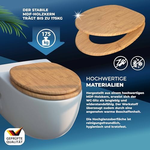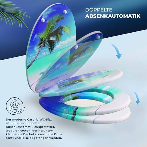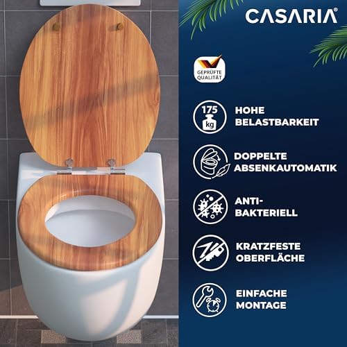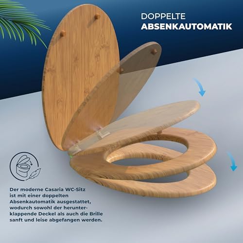 CASARIA® Toilettendeckel aus MDF mit doppelter Absenkautomatik für antibakterielle Hygiene und 175kg Belastbarkeit – ide