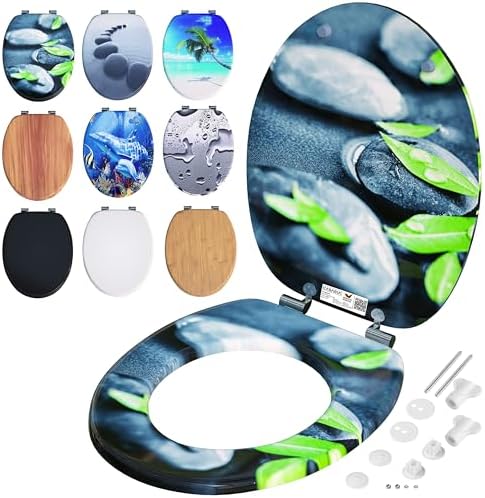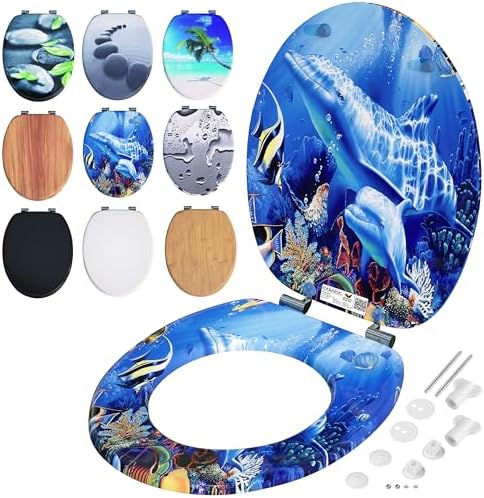 Der Toilettensitz kommt in einer eleganten O-Form (45,7 x 38 cm) und ist mit verschiedenen Motiven erhältlich. Er ergänzt das Design Ihres Badezimmers auf eine praktische und stilvolle Weise, sodass sowohl Funktionalität als auch Ästhetik berücksichtigt werden.