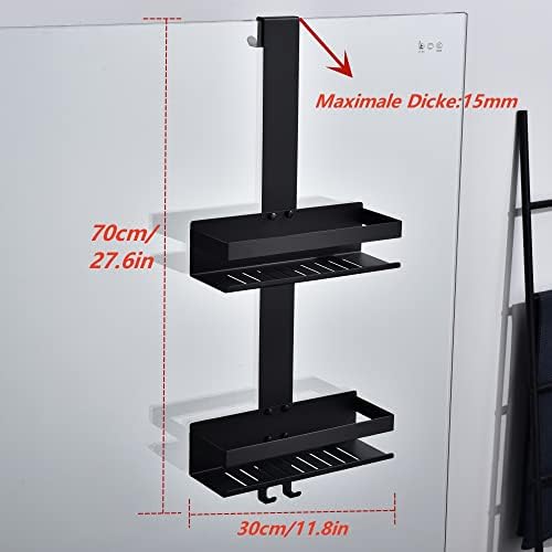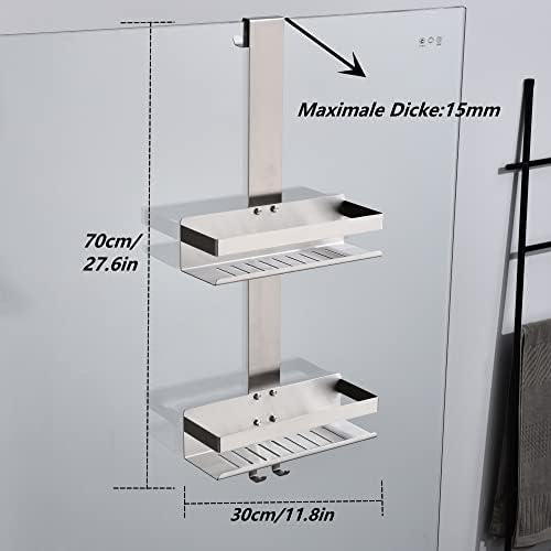 Mit einer Länge der Aufhängeplatte von 40 cm und einem Duschkorb von 30 × 10 × 8 cm bietet das Regal genügend Platz für Ihre Badutensilien wie Duschgel, Gesichtsreiniger, Körperlotion und Shampoo. Zusätzlich sorgen Gummischutzpolster auf der Rückseite dafür, dass das Glas vor Geräuschen geschützt wird – für einen ruhigen und entspannten Badezimmerbesuch.