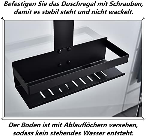 Dieses Duschregal eignet sich ideal für alle Badezimmer, von kleinen Mietwohnungen bis hin zu großzügigen Wellnessoasen. Nutzen Sie es als stilvolle und praktische Lösung, um Ihre persönlichen Pflegeprodukte stets griffbereit zu haben.