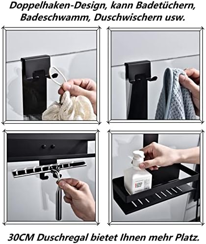 Die Bad Duschablage bietet Ihnen gleich zwei praktische Haken, an denen Handtücher, Bademäntel oder Duschabzieher ordentlich aufgehängt werden können. Dieser durchdachte Zusatz maximiert nicht nur den verfügbaren Platz, sondern sorgt auch für Ordnung und Übersichtlichkeit in Ihrem Badezimmer.