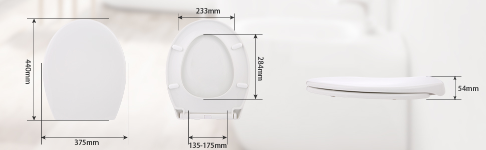 Mit dem 360° verstellbaren Edelstahlscharniere lässt sich der WC-Sitz ganz individuell an ihre Toilette anpassen. Die anpassbaren Maße (Länge: 405 – 445 mm, Breite: 375 mm, Höhe: 54 mm und Lochabstand von 135 – 175 mm) ermöglichen eine perfekte Passform und ein stilvolles Erscheinungsbild, das in jedes Badezimmer passt.