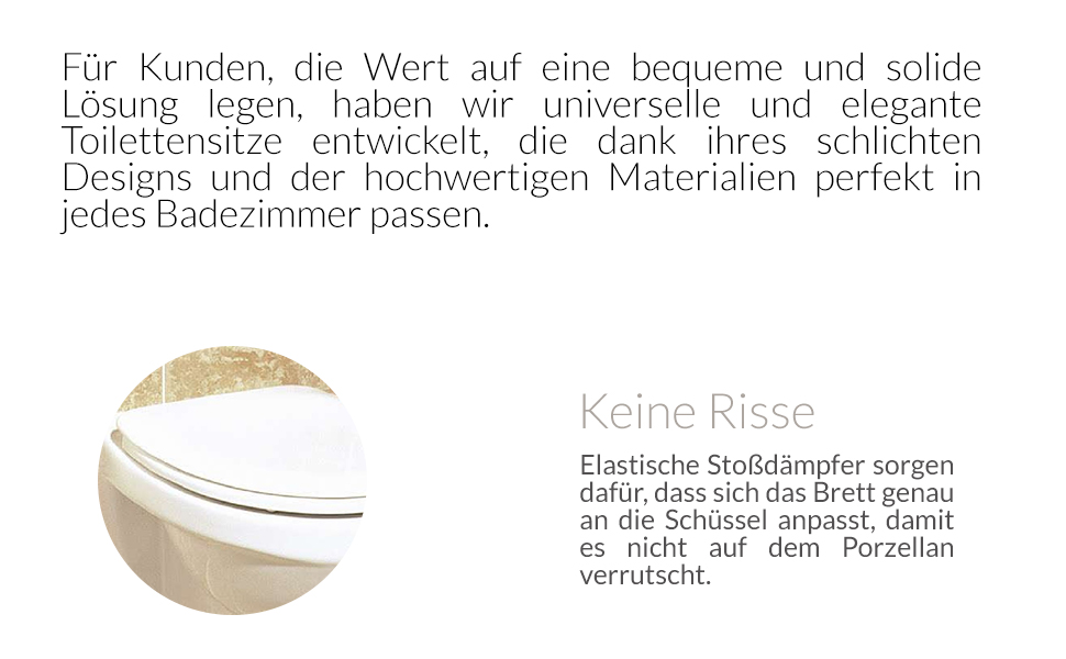 • Komfortable Handhabung: Der Toilettensitz mit integriertem Schnellverschluss ermöglicht eine mühelose Reinigung und Handhabung.