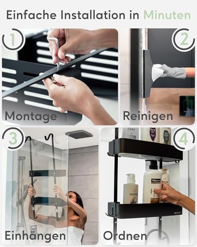 Verleihen Sie Ihrer Dusche mit dem Duschregal ohne Bohren einen neuen Glanz und genießen Sie die einfache Handhabung und hohe Funktionalität – ganz ohne Kompromisse!