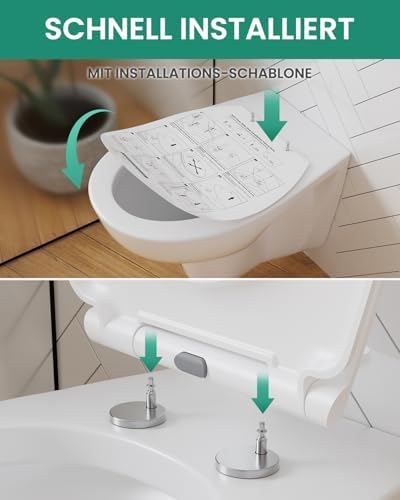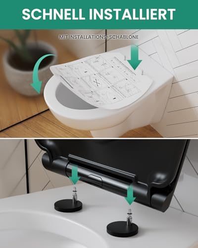 Die Anbringung des Toilettensitzes gestaltet sich äußerst unkompliziert. Dank der mitgelieferten Schablone lässt sich der Klodeckel spielend leicht auf der Keramik anpassen, ohne dass zusätzliches Nachjustieren oder erneutes Ausrichten nötig ist. Die hochwertige Verarbeitung der rostfreien Edelstahl-Scharniere sorgt für Stabilität und ein wackelfreies Erlebnis – ganz ohne lästiges Knacken oder Knarren.