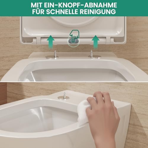 Ein besonderes Highlight ist die Quick-Release-Funktion, die eine schnelle und hygienische Reinigung des Toilettensitzes ermöglicht. Mit nur einem Knopfdruck lässt sich der Deckel mühelos abnehmen, reinigen und wieder anbringen. So bleibt Ihr Badezimmer nicht nur sauber, sondern auch einladend und frisch.