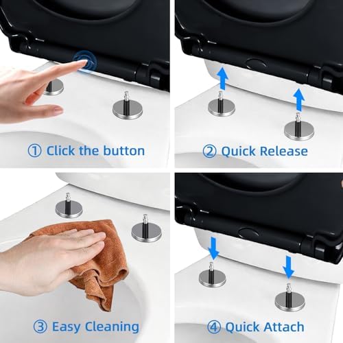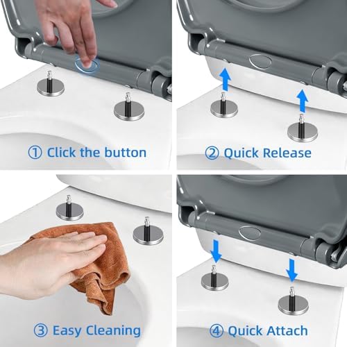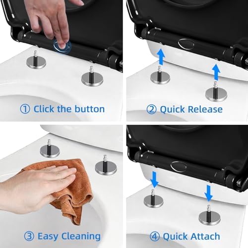 Der praktische Schnellverschluss ermöglicht eine einfache Demontage auf Knopfdruck, was die Reinigung erheblich erleichtert. Die glatte Oberfläche aus hochwertigem Material ist schmutzabweisend und sorgt dafür, dass der Klodeckel auch nach längerer Nutzung farbecht bleibt. Dieser Toilettensitz ist die perfekte Wahl für Familien und öffentliche Einrichtungen.