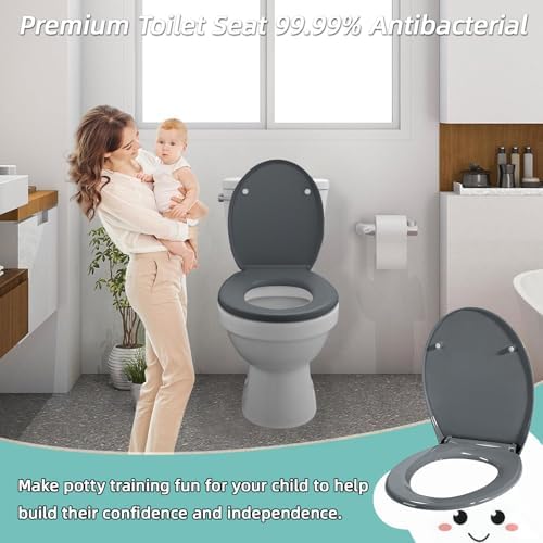 Ein herausragendes Merkmal dieses Toilettensitzes ist das 2-in-1-Design, das einen integrierten Kindersitz umfasst. Es erleichtert Kindern das Erlernen und Trainieren des Toilettengangs und passt sich optimal den Bedürfnissen einer Familie an. Der Kindersitz kann mühelos entfernt werden, wenn Ihr Kind größer wird, was Ihnen zusätzliche Kosten für separate Kindertoiletten erspart.